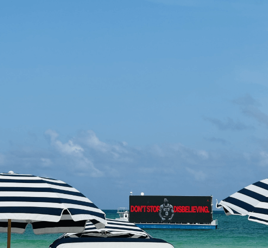 6月22日,在美國佛羅里達州邁阿密海灘,一則引人注目的塔圖姆巨幅廣告近日出現(xiàn)在一艘船體上,標語鮮明地寫著:“不要停止質(zhì)疑。”這一意味深遠的信息令人不禁思索。